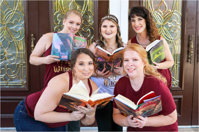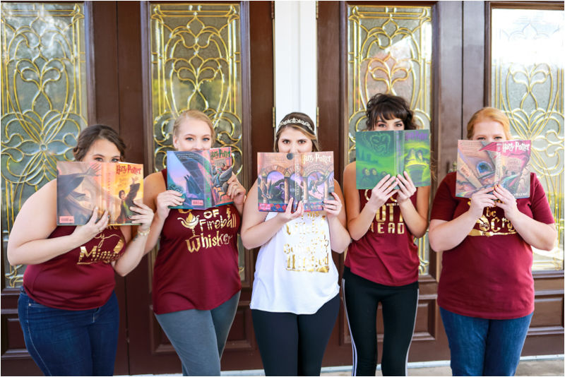 The bridesmaids dabbled into Alexia's private collection of books while the groomsmen got into the action by sporting socks representing the four Harry Potter house colors and crests.